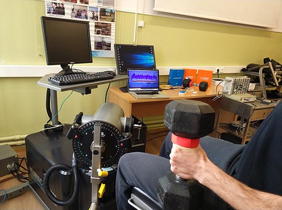 Και στις δύο ομάδες ηλεκτρομυογράφος χρησιμοποιήθηκε για την παρακολούθηση του καμπτήρα του αντιβραχίου για την απόδοση και συμμέτοχή του στην άσκηση.